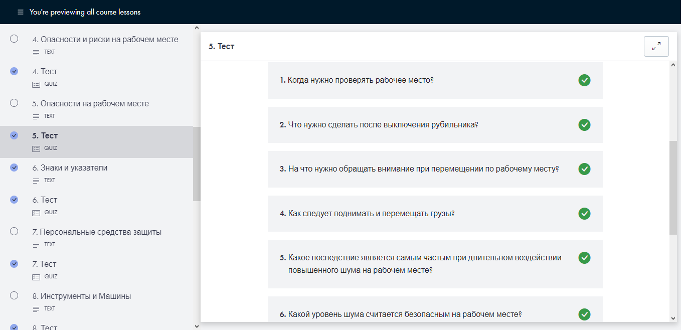 Тесты в конце каждой главы